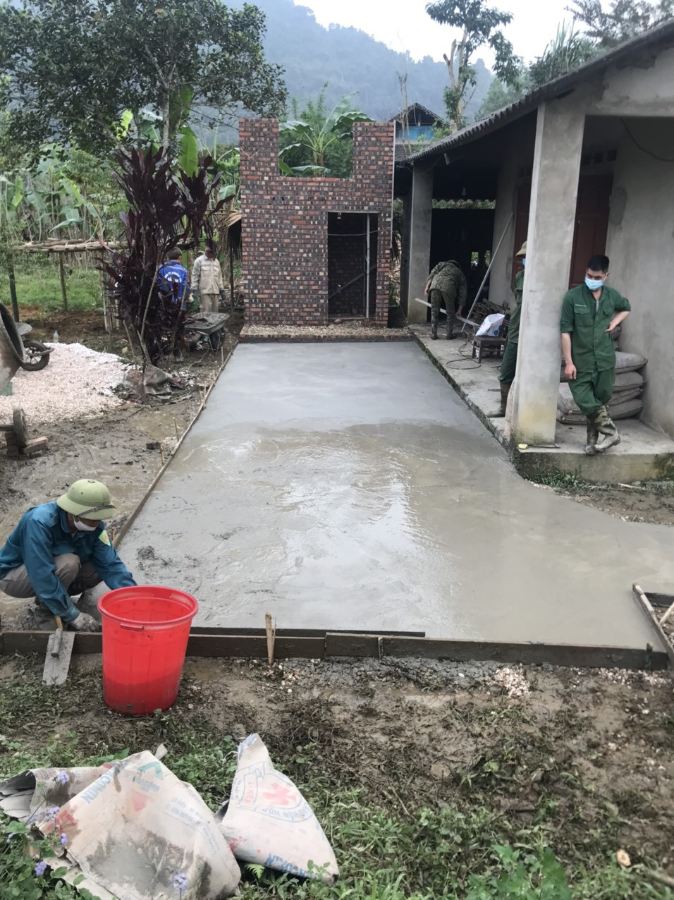 Cũng sau chuyến thăm trực tiếp này, ban lãnh đạo Công ty đã quyết định hỗ trợ chi phí và trực tiếp cử anh Nguyễn Minh Hà, là kỹ sư xây dựng của Công ty xuống tận nơi thi công xây dựng khu công trình phụ, đổ bê tông ngõ và sân nhà để giúp chú Thắng phần nào cải thiện chất lượng cuộc sống hiện tại và tuổi già neo đơn bớt cơ cực.